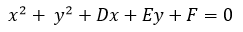 Y para el radio se utiliza la fórmula:         r2 = (D/2)2 + (E/2)2 - F